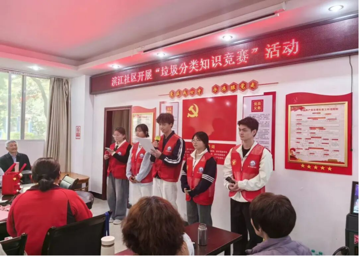 为深入推进垃圾分类宣传工作,增强社区居民环保意识,2026年3月24日,电子信息学院大学生志愿服务分中心的志愿者们走进滨江社区党群服务中心,开展了一场别开生面的“垃圾分类知识竞赛”活动,用青春力量为社区环保事业添砖加瓦。