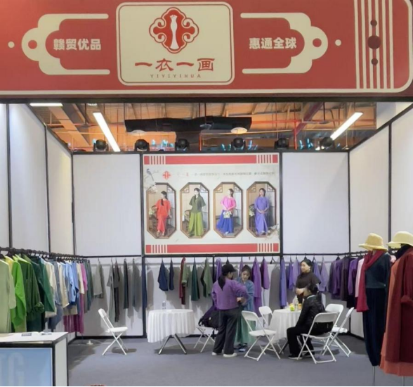 本届展会以“红生万象・织梦华章”为主题,设置品牌服装、设计创新、供应链等五大展区,展览规模超3万平方米,吸引近300余家企业参展及40余个国家的150余位国际买手到场洽购。“一衣一画”品牌展位位于设计创新展区核心位置,集中呈现“客家雅韵”“红色薪火”两大系列28件作品,将赣州客家织带、苏区红色纹样等地域文化元素与现代服饰剪裁相结合,通过手绘面料、非遗刺绣等工艺,实现传统与时尚的创意碰撞。