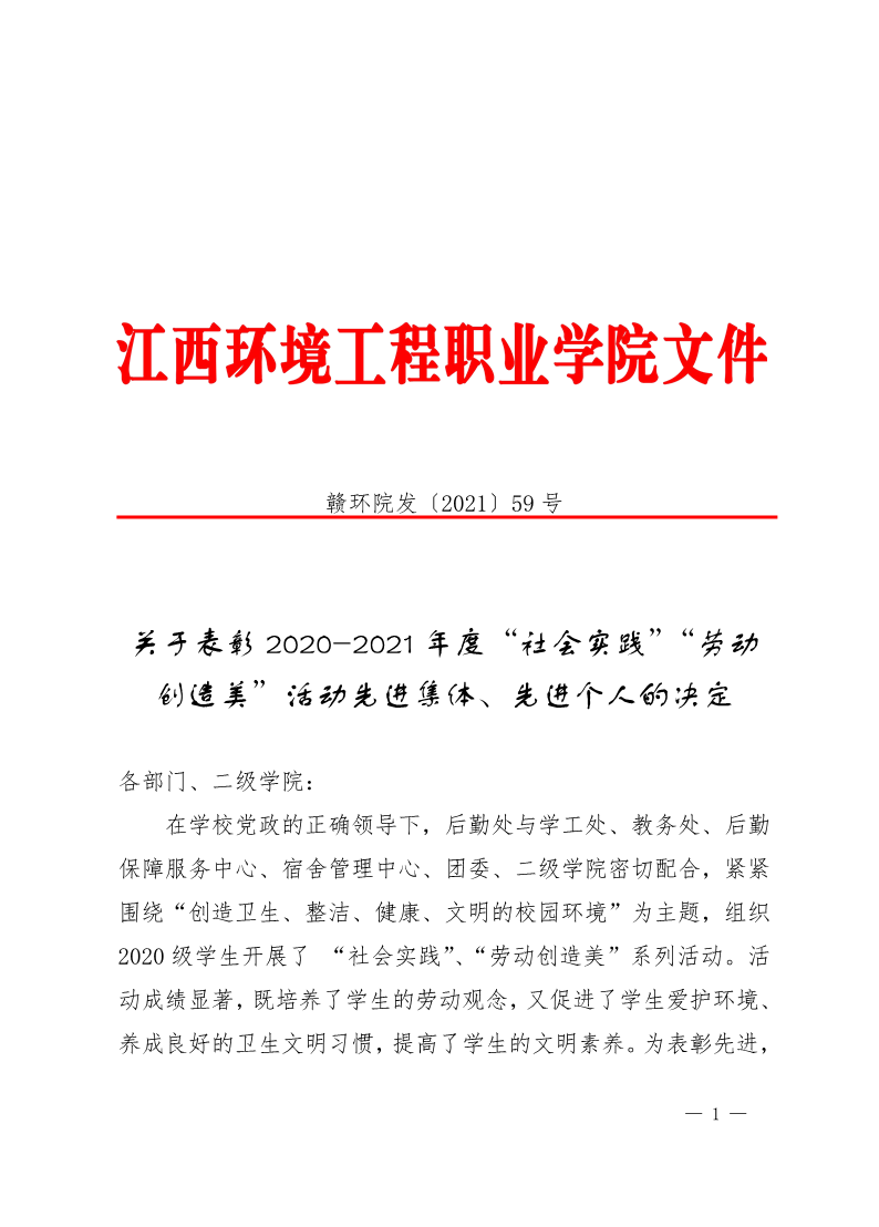 关于表彰2020-2021年度“社会实践“”劳动创造美”活动先进集体、先进个人的决定
