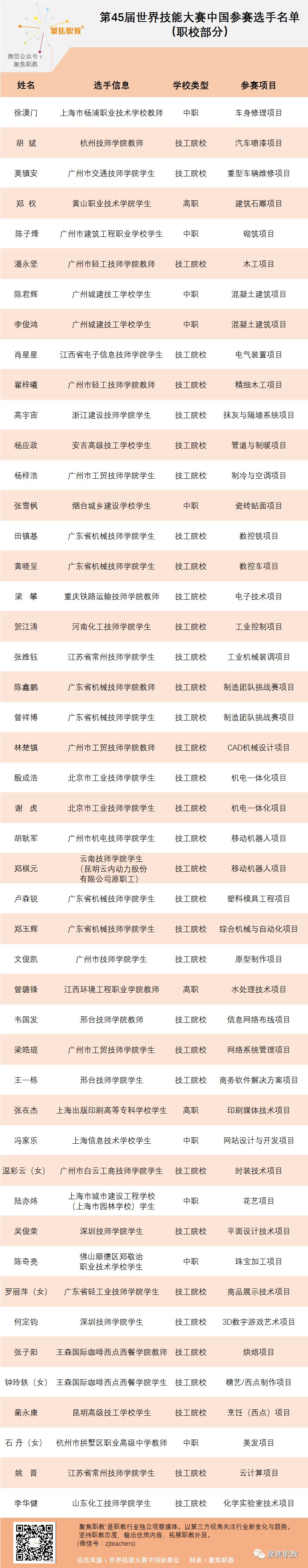 聚焦职教带你走进部分参赛选手,认识这些由职业院校培养的国家健儿!