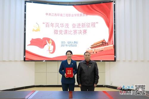 大江网/大江新闻客户端讯 杜梦琪、吴近贤报道:为推进党史学习教育走深走实,教育引导师生深刻感悟中国共产党百年光辉历程、伟大成就和宝贵经验,12月22日,江西环境工程职业学院在学术报告厅举行“百年风华茂,奋进新征程”党史学习教育微党课大赛决赛。