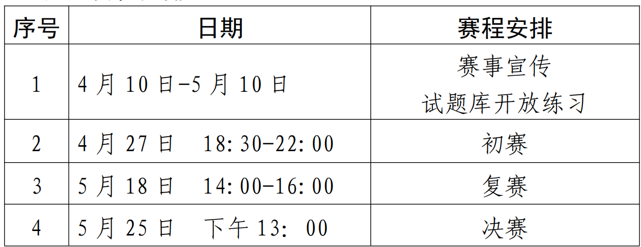 2.赛题为客观题,分为四轮,决赛题目将在出题组题目中随机抽取。