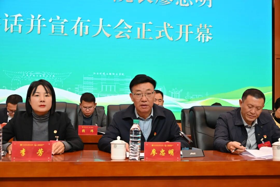 江西环境工程职业学院党委副书记、院长廖忠明讲话并宣布大会正式开幕