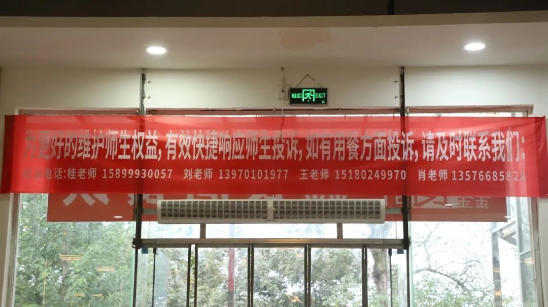 最后,大家在食堂遇到食品质量、窗口服务问题时,可直接通过横幅上的联系方式反馈,食堂会第一时间跟进处理,保证每一份诉求都能有理有据地得到回应,同时也会借这类反馈优化食堂管理,让食堂服务更透明、更贴合大家的需求~