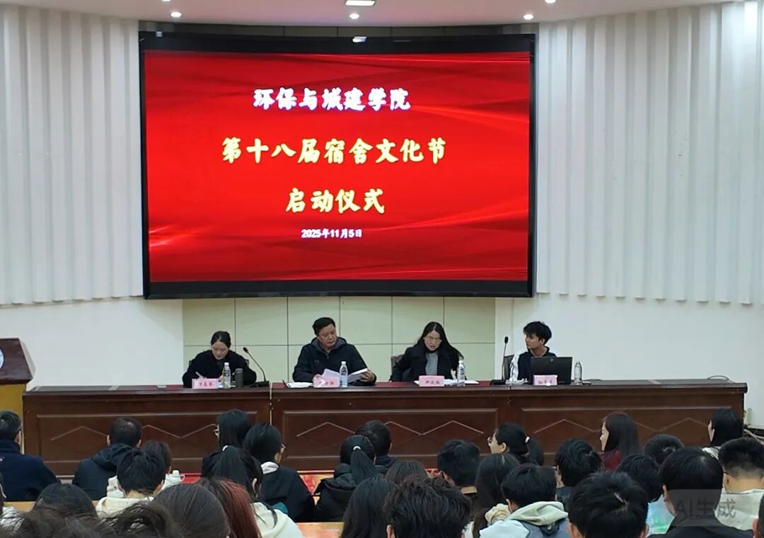 2025年11月5日12时,环保与城建学院在通讯楼学术报告厅举办第十八届宿舍文化节启动仪式,学院领导、宿管代表、师生骨干参会。钟风梅老师解读活动方案,孙东东老师说明评选规则并引导寝室对标优秀学习;往届“五星级寝室”代表温欣分享感悟,强调宿舍的温馨属性与共同维护的重要性。