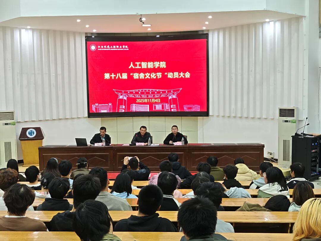 2025年11月4日晚,人工智能学院在通信楼学术报告厅举办第十八届宿舍文化节启动仪式,校院领导、师生代表共200余人参会,赖炜副书记主持。团总支书记施玉佳详细解读活动方案,明确时间安排、流程及评比方式,引导学生培养良好习惯、强化集体意识;党委学工部部长卢欢庆强调活动对凝聚宿舍力量、培育优良风气的意义,鼓励学生共建温馨宿舍,并将良好风尚延伸至职业发展中。