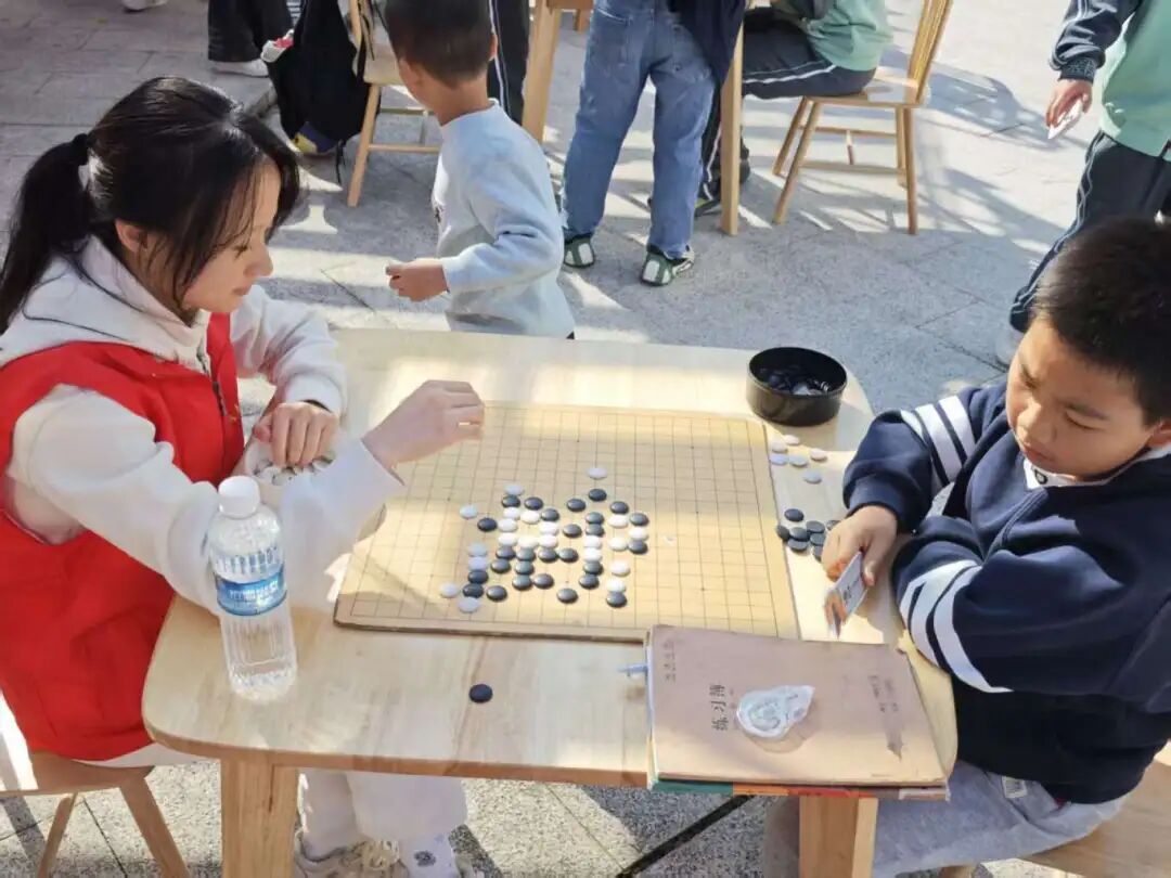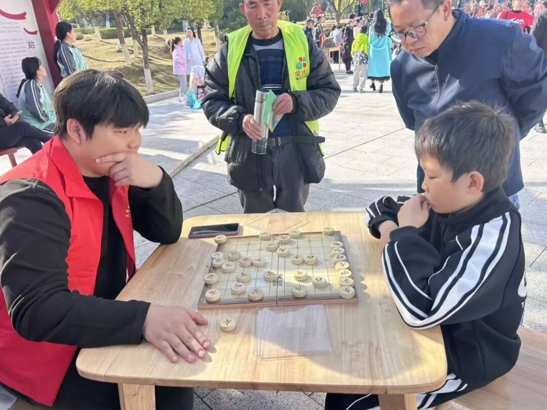 棋盘之上,智慧交锋不停歇。活动设置五子棋、围棋、象棋三大棋类体验区,志愿者针对不同年龄段参与者设计阶梯式互动:从基础规则讲解到简单战术演示,再到自由对弈交流。大家在楚河汉界的博弈、黑白棋子的布局中,既锻炼了逻辑思维与专注力,又学会了遵守规则、尊重对手。邻里之间、亲子之间以棋会友,让社区烟火气里多了份别样温情。