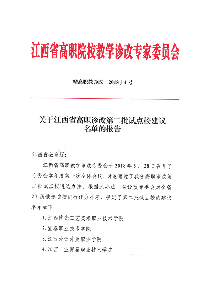 赣高职教诊改【2018】4号关于确定江西省高职诊改第二批试点校名单的报告 来源: 发布时间:2018-09-09 16:35:50 浏览次数: 次 【字体:小 大】 终审:质量办 分享到: 【打印正文】