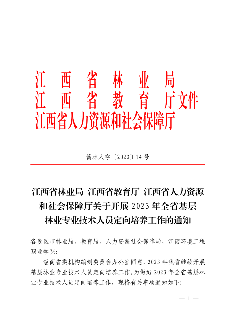 关于开展 2023 年全省基层林业专业技术人员定向培养工作的通知