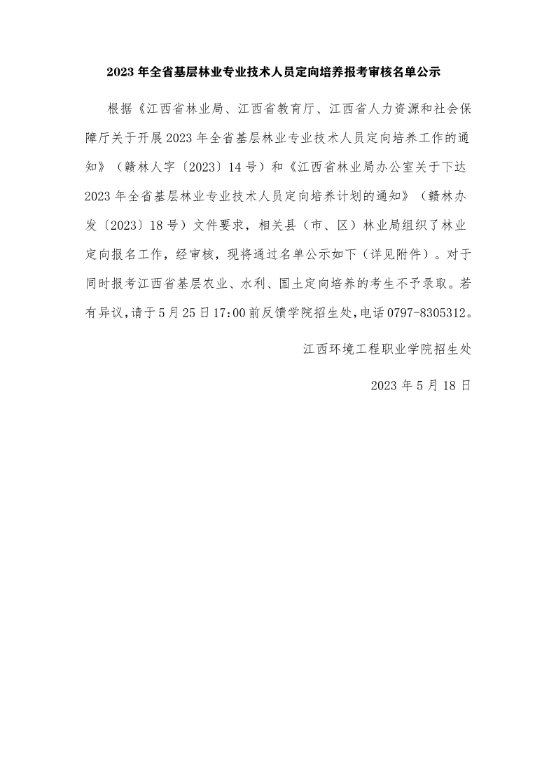 2023年全省基层林业专业技术人员定向培养报考审核名单公示