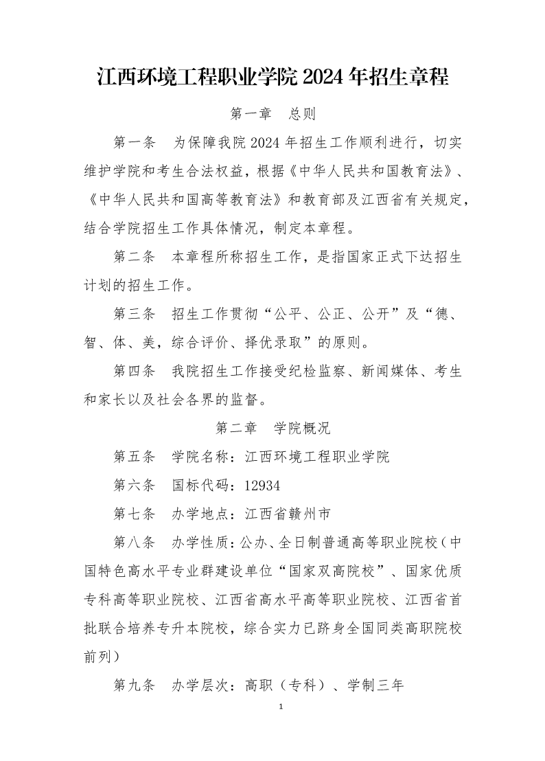 江西环境工程职业学院2024年招生章程